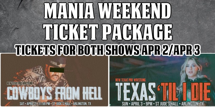 We are heading towards Mania Week here in Texas, and we have two MASSIVE shows planned for April 2nd and April 3rd from the St Jude’s Hall (formally the Knights of Columbus Hall) in Arlington, Texas.