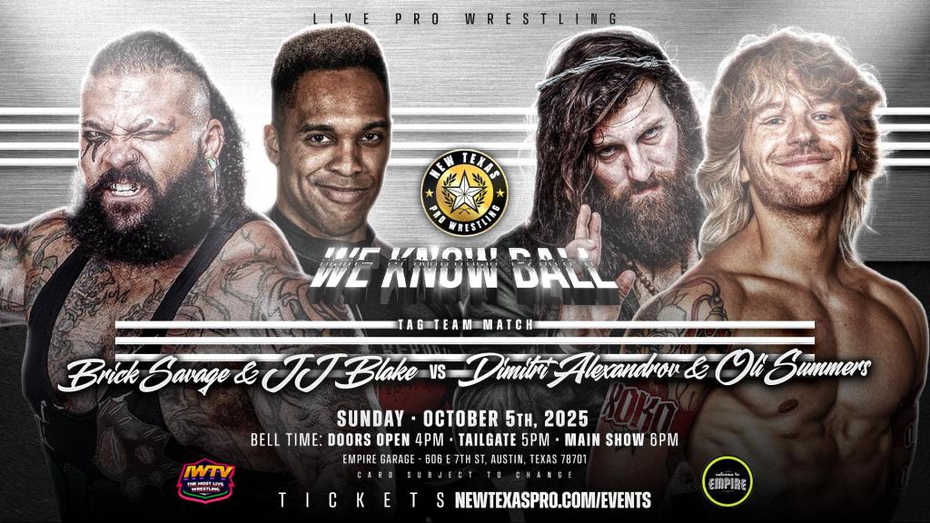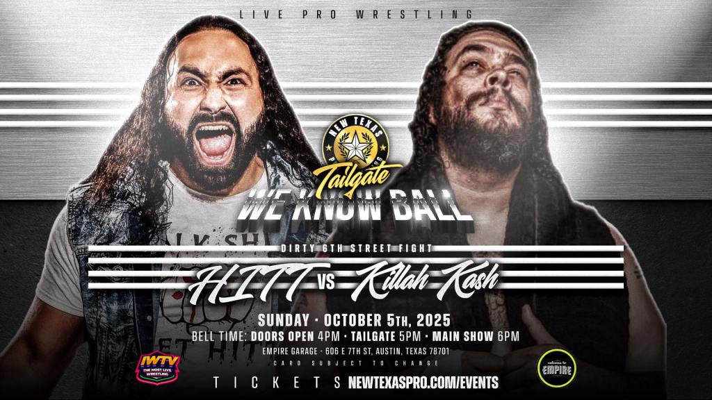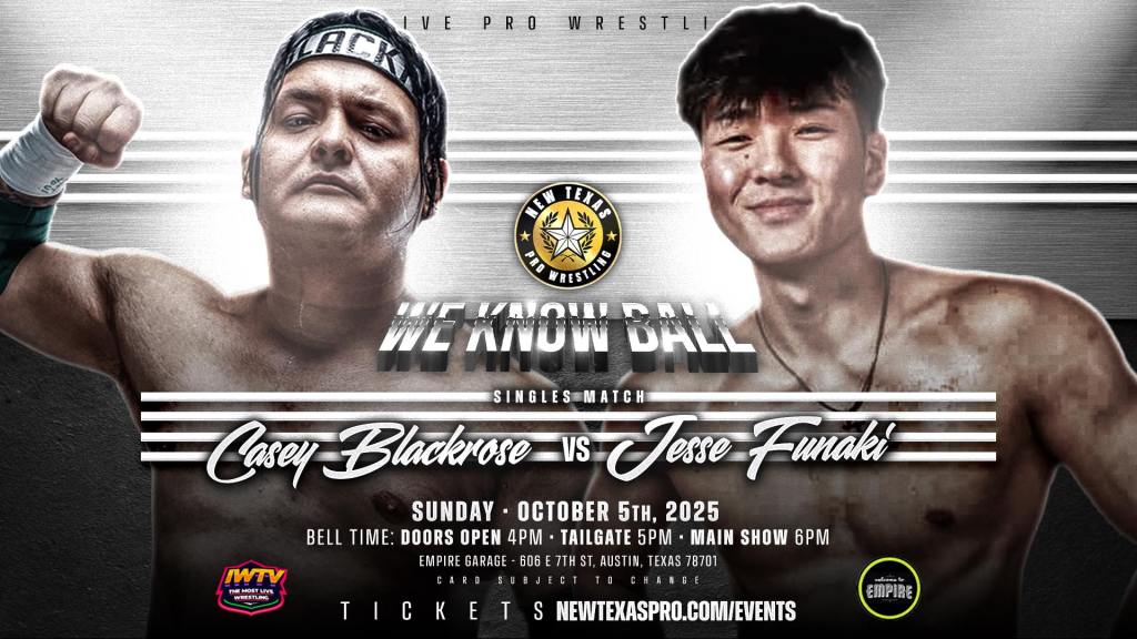 Keep a close eye out for more upcoming match announcements on all the great talent to gather in Austin for NEW TEXAS PRO’S “WE KNOW BALL”! We can’t wait to see you at 6pm @ Empire Control Room & Garage!