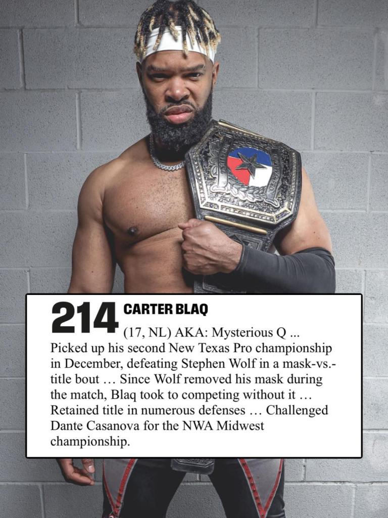 Carter BlaQ recognized as #214 on PWIs Top 500 Indie Wrestlers list